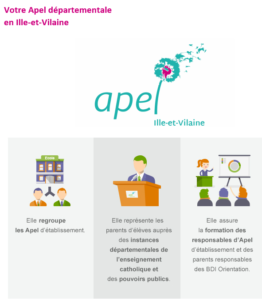 En Ille-et-Vilaine, l’Apel 35 regroupe et accompagne les Apel des 320 établissements de l’Enseignement Catholique du département et ses 85.000 élèves.
